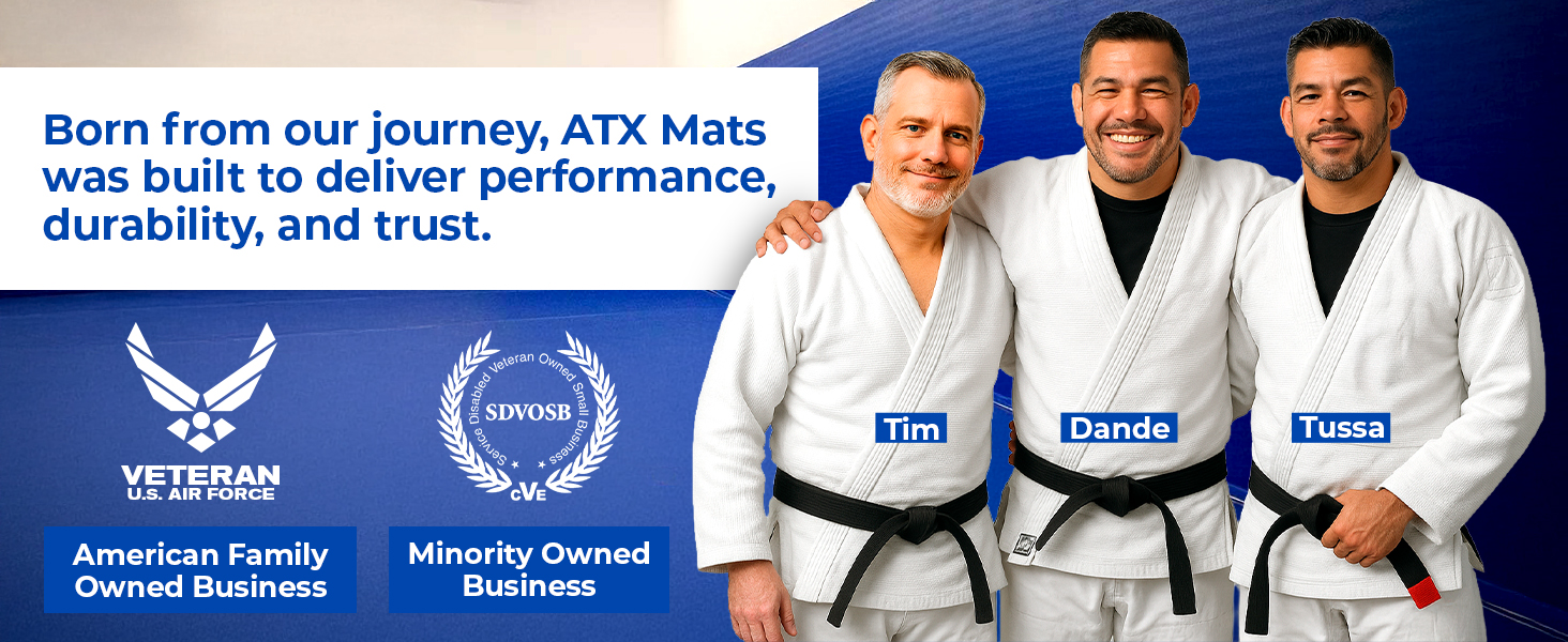 Founded in 2021, ATX Mats was created to redefine the sports flooring market by delivering factory-direct value and quality. Led by three Brazilian Jiu-Jitsu black belts, we bring unmatched experience and passion to everything we do. Our mission is to provide durable, reliable, and accessible sports flooring that meets the needs of athletes everywhere